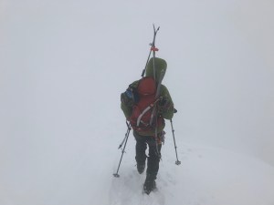 We had dropped about 500ft when suddenly everything blew off and the weather cleared. At this point we decided to go for the summit after all so we turned back around and finished the climb.