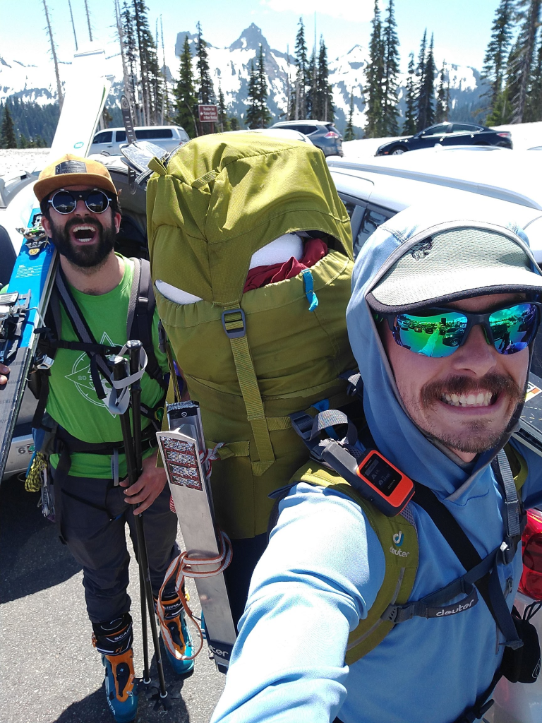 It’s Friday evening, and Zach and I had just been set up by our mutual friend Whitney to climb and ski Mt. Rainier together over the weekend. We had both been looking for partners to attempt the Fuhrer Finger route, and had both approached Whitney about skiing the Finger. The Fuhrer Finger is an extraordinary ski mountaineering line; it takes a direct line up a south aspect of Mt. Rainier, and gets its name from the 3000 vertical foot, 40 degree chute located about two thirds of the way up the route, called ‘the finger.’ Some sources cite it as the biggest ski descent in the lower forty eight, but I’m skeptical of anything with a ‘biggest’ quantifier in front of it. It’s definitely up there, a rad line, for sure. In good conditions, the entire 9000 vertical feet of the route is ski-able on the descent, with the option to extend that even further by skiing to the Nisqually bridge.