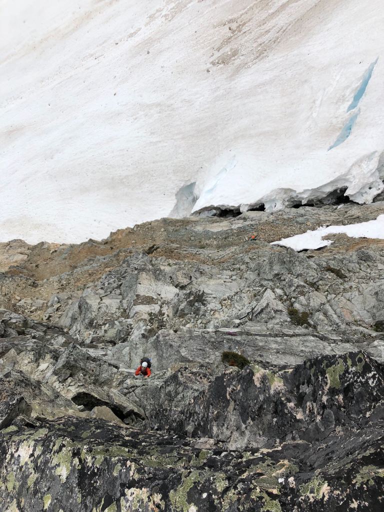The next morning we were up by 5:30am, packed up and moving by 7am. The slabs below the glacier made for some enjoyable 3rd and 4th class scrambling until we ultimately roped up for the glacier crossing.