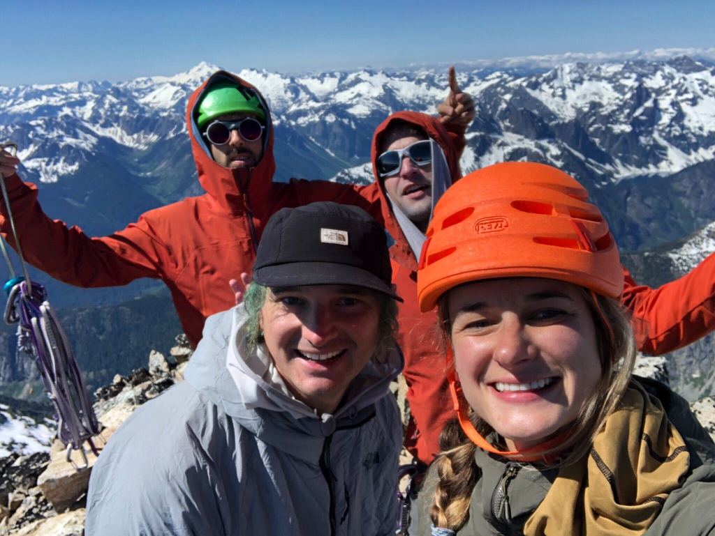 We topped out at 10:30am on a gorgeous sunny Sunday, July 5th. From the summit you can see every major peak in the North Cascades and an overwhelming number of the minor peaks as well. Goode has a feeling of sitting directly in the heart of the region. We lingered just long enough to take a selfie before hurrying to start the process down. Our intent was to make it to Stehekin that night where we had booked a room at the landing and we had some serious ground to cover ahead of us.